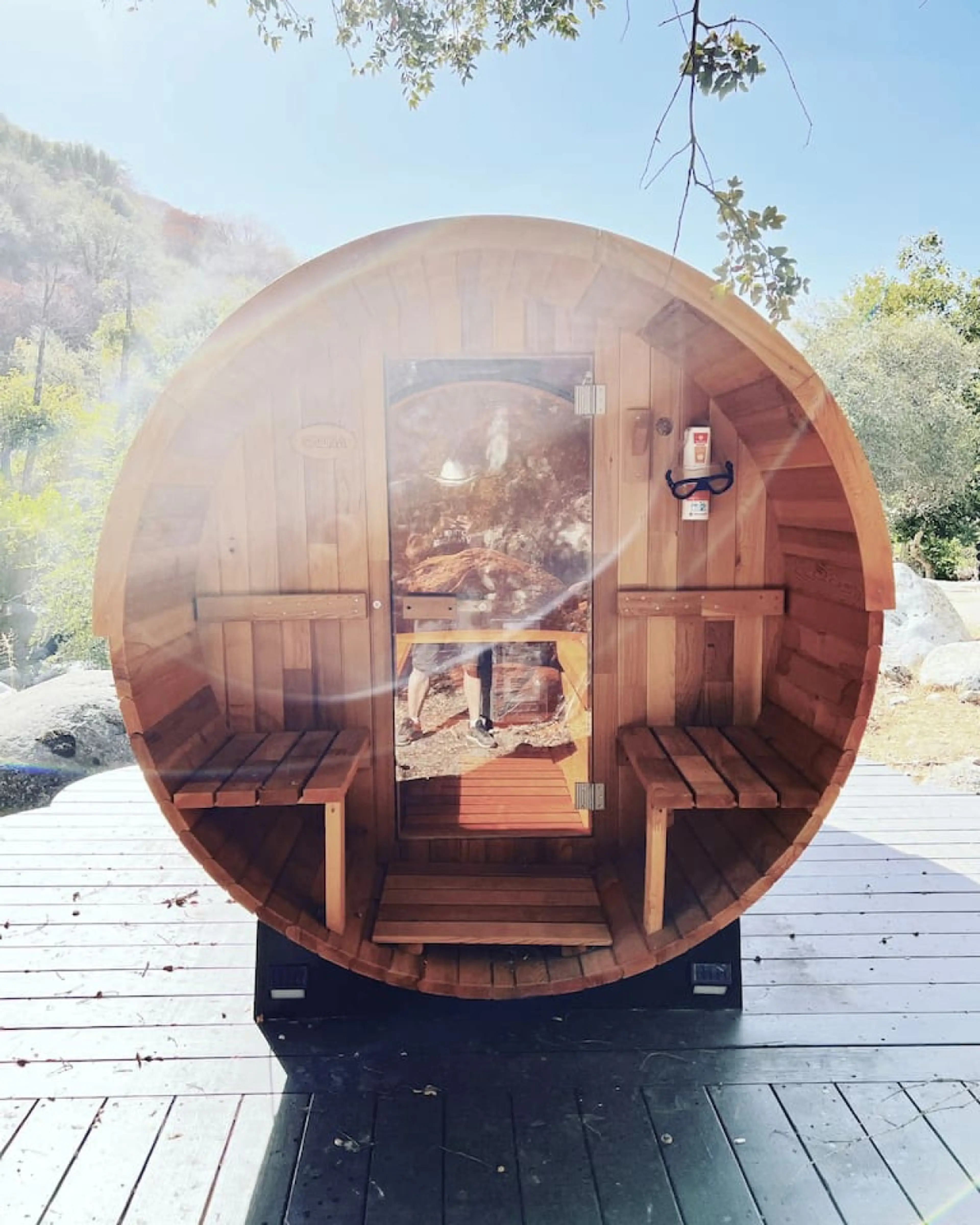 There’s a gym, sauna, kitchens, clean showers and restrooms with no lines, plus a beautiful mountain river running through the grounds with a well-made access point for swimming or just relaxing by the water. Overall, it’s the perfect mix of comfort and wilderness, you can cook dinner and enjoy all the essentials of a civilized stay, while still feeling like a pioneer fully immersed in nature. Just keep in mind, the road up to the glamping itself is an adventure of its own, safe, but definitely for drivers who enjoy a bit of wild fun.